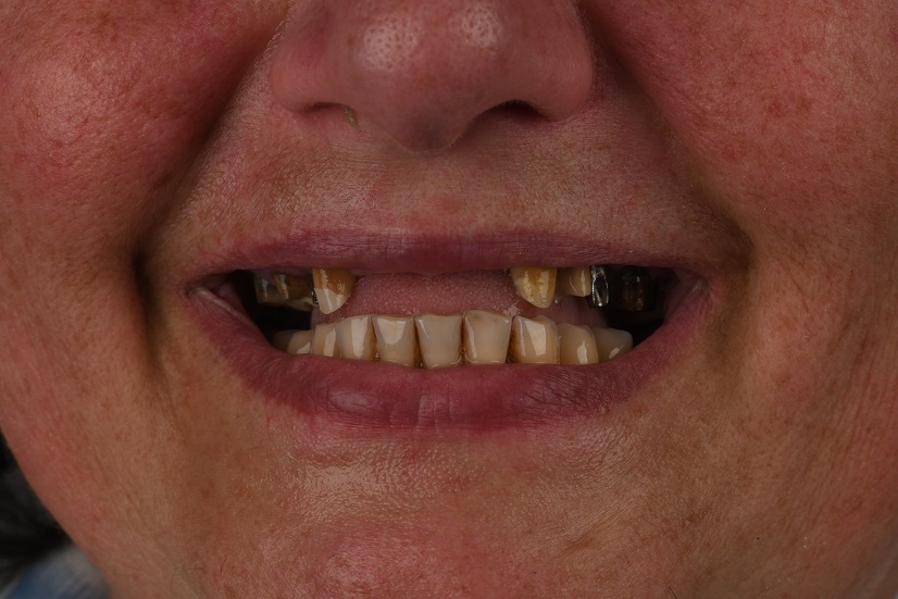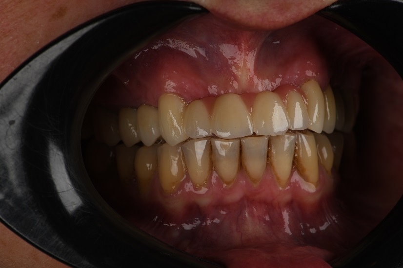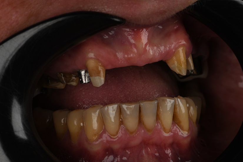 در این نمونه، بیمار با از دست دادن تعدادی از دندانهای فک بالا به ما مراجعه کرد و پس از بررسیهای دقیق، تصمیم به انجام اوردنچر بر پایه ایمپلنت گرفته شد. این درمان با هدف بازسازی زیبایی لبخند، بهبود عملکرد جویدن و حفظ ساختار طبیعی صورت انجام شد. استفاده از اوردنچر در این روش، ضمن ایجاد ثبات بالا و راحتی برای بیمار، باعث شد لبخندی طبیعی و متناسب با فرم صورت بازسازی شود. این نمونه از درمانهای موفق دندانپزشکی زیبایی در کلینیک دکتر محمد قاسمی به شمار میرود.