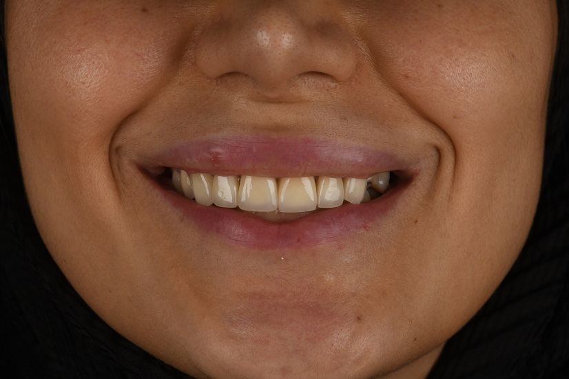 در این نمونه درمان، بیمار با هدف اصلاح طرح لبخند و جایگزینی یک دندان از دست رفته به ما مراجعه کرد. مراحل درمان شامل موارد زیر بود:
